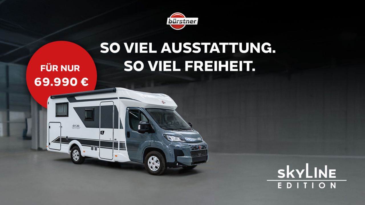 Jetzt einsteigen und durchstarten – mit der neuen Bürstner Lyseo Time SkyLine Edition! Vollleder-Polster, XL-Aufbautür, Sat-Anlage, Markise, moderne Küche und ein stilvolles Interieur serienmäßig an Bord – und das alles für nur 69.990 €.